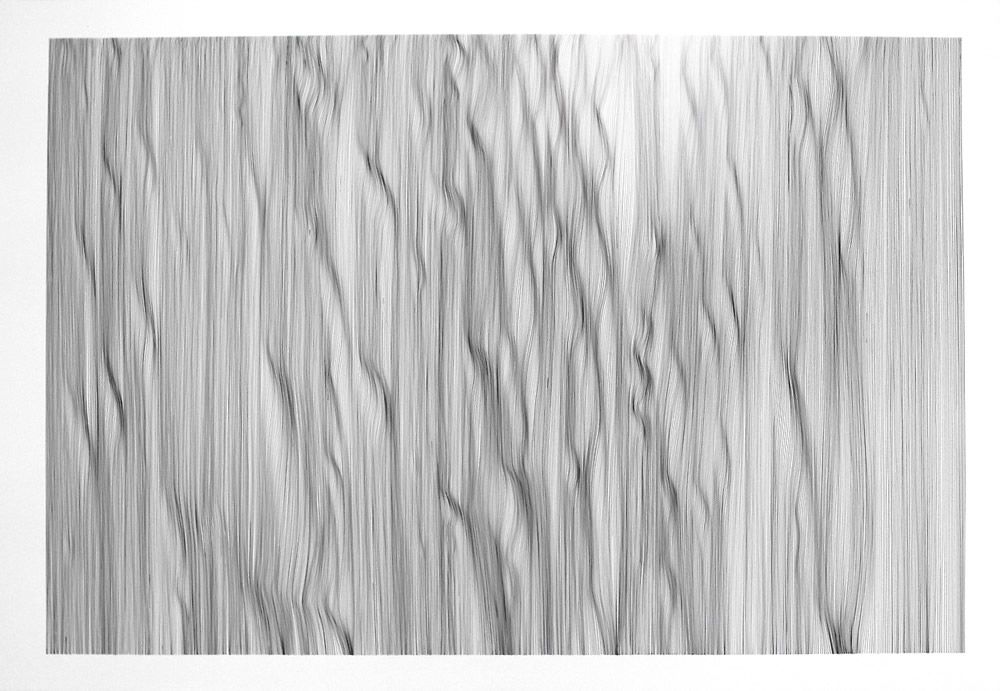 In „each line one breath“, visual artist John Franzen uses his body and his breathing to draw lines. Each line is drawn on an exhale. The act of drawing, mechanical and organic at the same time, mimics the act of breathing. Just as each breath is subject to a multitude of psychophysical factors, so is each drawn line. “The fascination in this work is how the breath directly influences the materialization of the line, and thereby the whole image.”
