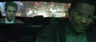 Max, played by Jamie Fox, a cab driver in Los Angeles has picked up Vincent, an assassin played by Tom Cruise. Vincent has hired Max for the whole night, telling him he has several stops to make. At Vincent‘s first kill stop, his target accidentally fell out of the open window after being shot and onto Max‘s cab. Max was tucking into a homemade sandwich when the body hit the roof and windshield and Max‘s food splattered all over the passenger seat and floor. (This is significant because the movie starts with Max meticulously cleaning his car.) Vincent returns, threatens Max with a gun and orders him to help him stuff the dead body into the trunk. Vincent then orders Max to drive on.
