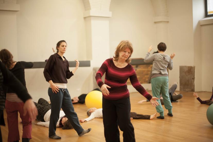 In her Moving Thought choreography, I and the other participants huddled together in a tight group, then separated to spread out in the room, came together again, intermittently changing speed and direction. We then formed small groups and continued in this way. Trude explained that the way we were moving mirrored the movement of cellular life.